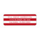 Una etiqueta de retorno moderna con tu nombre y dirección (estilo de letra elegante) en franjas alternas rojas y blancas