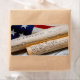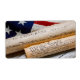 Copias de la Declaración de Independencia y la Constitución de los Estados Unidos enrolladas con una bandera vintage de los Estados Unidos