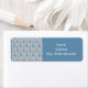 Estas etiquetas de dirección de retorno tienen un diseño art deco de medio círculo en plata en un campo de turquesa.