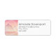 Etiquetas de direcciones con un encantador ilustracion. Colores pasteles de rosa y melocotón. Paisaje con planetas, montañas y nubes.