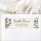 Etiquetas de dirección de devolución de ducha de boda caprichosas y extravagantes con un hermoso diseño de garabato floral colorido dibujado a mano, acompañado de una fuente manuscrita informal.