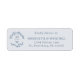 Etiqueta de correo de dirección RSVP RSVP de Wreath Blue Monogram Dusty... Una etiqueta de dirección de retorno polvorienta azul y gris claro para los sobres RSVP de tu boda. La etiqueta contiene una florida corona botánica que muestra las iniciales del monograma de la novia y el novio junto a los nombres y la dirección del novio y la novia. Todo el texto se revisa fácilmente en la plantilla de personalización.