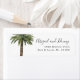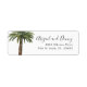 Un conjunto único de etiquetas con la temática de la palmera, con la dirección y el nombre de la pareja en forma de escritura cursiva.