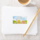 Bright spring colors and playful charm decorate these watercolor Easter party return address labels featuring a fluffy baby chick carrying a basket of colorful Easter eggs while a friendly bunny in a pink bowtie keeps watch nearby. Surrounded by blooming pastel tulips, the cheerful design captures the joyful spirit of the season, adding a festive and whimsical touch to Easter brunches, egg hunts, and spring celebrations.
