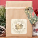Hoja de arce dorada en etiqueta de marfil. Las palabras "MAPLE SYRUP" están escritas en una fuente dorada oscura cincelada.