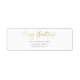 Mejora tu correspondencia navideña con nuestras etiquetas personalizadas de dirección de devolución de Navidad, que presentan un fondo blanco limpio y "Feliz Navidad" en dorado metálico falso. Estas etiquetas elegantes ofrecen campos personalizables para tu nombre y dirección, lo que añade un toque de elegancia festiva a tu correo. Perfectas para enviar tarjetas de Navidad, regalos y felicitaciones navideñas, estas etiquetas aseguran que tus cartas y paquetes sean notados con encanto estacional. Ideales para añadir un toque personal y sofisticado a tus envíos navideños.