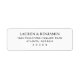 This elegant label features a clean, minimalist design with a focus on typography. The layout is vertically oriented, showcasing bold serif fonts that convey sophistication and formality. The monochromatic color palette of black text on a white background enhances readability and adds to the classic aesthetic. Perfect for formal occasions, this label combines simplicity with elegance, making it ideal for weddings or other special events where a refined touch is desired.