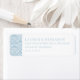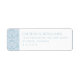 These return address labels feature a clean, minimalist design with an elegant damask pattern in light blue and white on the left side. The right side is kept simple with ample negative space, allowing the classic serif typography to stand out in soft gray-blue tones. Perfect for formal occasions, these labels offer customizable fields for names, addresses, and ZIP codes, making them ideal for weddings or sophisticated events. The muted color palette and timeless style convey a sense of calm sophistication, ensuring your mail stands out with understated elegance.