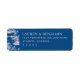 These return address labels feature a sophisticated design with a deep blue background and intricate white illustrations of pastoral scenes, including trees and bridges, creating an elegant border. The layout is balanced, with clean, serif typography centered on the right side for easy customization. The minimalist color palette emphasizes readability and adds a touch of formality, making these labels perfect for weddings or formal events. The combination of classic imagery and modern font gives off a timeless yet inviting vibe, ideal for those looking to add a personal touch to their correspondence.