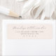 This elegant label features a minimalist design with a soft gray color palette set against a clean white background, creating a sophisticated and understated look. The layout is vertically oriented, showcasing graceful script typography for names at the top, followed by neatly arranged serif text for address details, ensuring clarity and balance. Its simple composition emphasizes readability while conveying an air of formality and refinement, making it perfect for personalizing wedding stationery or formal invitations. The absence of decorative motifs highlights its versatility, suitable for various special occasions that call for a touch of elegance.