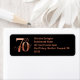 Our Elegant Rose Gold 70th Birthday Design is featured on this return address label to coordinate perfectly with your invitation ensemble. It has the luxurious rose gold foil effect with the words "Birthday Party" set using a Chic Handwritten Script Overlay. The Matte Black background makes the entire design shine! Personalize with your specific Name and Address. Look for the rest of our Mailing Accessories in this collection in the Ivy Barn Studio Store!