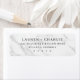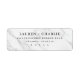 These return address labels feature a minimalist design with a marble-like background in white and gray veining, creating an elegant and modern look. The text is arranged vertically in a clean serif font, offering high contrast and readability against the light backdrop. Perfect for formal invitations or announcements, these labels convey sophistication and clarity without any additional motifs, focusing solely on delivering essential information. The customizable name placeholder allows personalization while maintaining a professional yet personal tone ideal for special occasions.