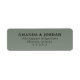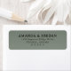 This return address label features a simple, centered layout with ample negative space on an olive green background. The design uses elegant serif fonts for both the customizable names and address, creating a formal and classic look that is perfect for invitations or official correspondence. Its minimalistic style emphasizes clarity and sophistication, making it ideal for those who appreciate understated elegance in their stationery.