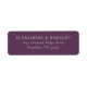 This elegant label features a minimalist design with a deep purple background and crisp white text, creating a sophisticated contrast. The centered layout showcases clean typography in a classic serif font, emphasizing clarity and refinement. Perfect for personalizing gifts or stationery, this label exudes a formal tone ideal for special occasions like weddings or anniversaries. Its simple yet stylish appearance ensures it complements any setting while maintaining an air of understated elegance.