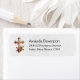 Disponen de etiquetas con un ilustracion de bonito con una sencilla cruz de madera cubierta de flores rosas y hojas verdes.