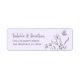 Etiqueta de dirección de devolución de boda simple y única con flores y mariposas de malva románticas y elegantes en fondo de color púrpura claro