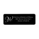 Elegante Monograma personalizado, Etiquetas de dirección de retorno de moda clásicas, iniciales, en blanco y negro. Texto blanco completamente personalizable, fondo negro.