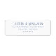 Esta etiqueta de dirección de devolución presenta un diseño limpio y minimalista con texto centrado sobre un fondo blanco. El color azul marino profundo proporciona un contraste sofisticado, realzando el estilo moderno y formal. Se utiliza una tipografía serif elegante tanto para el nombre como para las secciones de dirección, creando una apariencia coherente y profesional. Ideal para comunicaciones oficiales u ocasiones especiales, esta etiqueta emana claridad y simplicidad a través de su uso moderado del color y la falta de elementos decorativos.