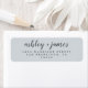 Moda, moderna y sencilla etiqueta de dirección de retorno boda con sus nombres en caligrafía de escritura a mano elegante y fuera de negro sobre un fondo azul pastel. Simplemente agregue sus nombres y dirección. Diseñado exclusivamente para usted por Happy Dolphin Studio. Si necesita ayuda o productos coincidentes, por favor contáctenos en happydolphinstudio@outlook.com. ¡Estamos encantados de ayudarle a hacer de su boda el día más hermoso!
