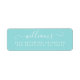 Moda, nombre familiar moderno y simple etiqueta de dirección de retorno con tu apellido en blanco elegante caligrafía de escritura manuscrita en un fondo azul turquesa. Simplemente agrega tu nombre y dirección. Diseñado exclusivamente para usted por Happy Dolphin Studio. Si necesita ayuda o productos que coincidan, por favor contáctenos a través del chat de la tienda.