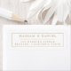 Sello de dirección de devolución de boda elegante y simple, con un diseño minimalista moderno, que presenta el nombre de la novia y el novio en tipografía de letra serif con un borde elegante combinado con un texto de dirección de correo personalizable en una fuente de moda para un ambiente chic y sofisticado en oro y blanco clásico.
