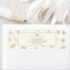 Añade un toque de elegancia a tus correspondencias de vacaciones con una etiqueta de dirección de devolución de hojas de invierno de oro. Nombre y detalles colocados en el centro sobre un elegante fondo de hojas de oro de marfil.