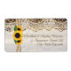 Etiqueta Encaje blanco, cinta y girasoles en boda de madera