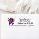 Return address labels to help spread awareness for Epilepsy featuring a purple awareness ribbon done in a pop art style.
