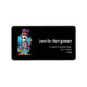 Etiquetas de dirección con una ilustración de un esqueleto divertido. Lleva sombrero de copa y sostiene una bebida. Tiene una gran sonrisa en la cara. Diversión linda y espeluznante para Halloween.
