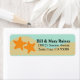 Un bonito ilustracion de dos estrellas de mar sobre la arena al lado del agua del océano. Personalice estas etiquetas temáticas de la playa con su nombre y dirección.