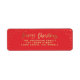 Dorado rojo Merry Christmas stars etiqueta de la dirección de retorno de la tarjeta navideña. Con un texto de guión y un diseño de efecto dorado, el color de fondo se puede cambiar para adaptarse a tu estilo.