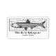 Un antiguo Libris (este libro pertenece a) con una imagen de una anchoa nadando en el mar en una caja rectangular con texto debajo. Cambie el nombre a personalizar.