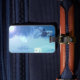 Etiqueta extrema del equipaje que practica surf