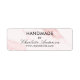 Una etiqueta para sus productos o arte hechos a mano. Personalice y agregue su nombre y dirección de sitio web. Impresión de piedra de mármol rosa Rubor como fondo, texto negro.