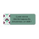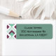 Estas etiquetas de dirección de retorno tienen un diseño art deco de los diamantes verdes del fondo marino con líneas diagonales y diamantes de berenjenas en un campo blanco.