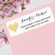 Crea tu propio personalizado, personalizado, bonito y falso corazón de oro elegante etiqueta de dirección de retorno en blanco y negro. Simplemente ingresa tu nombre/nombre/apellidos/esposa y marido, y dirección. Elegantes etiquetas de dirección de retorno para uso en el día de San Valentín, boda, aniversario de matrimonio, cumpleaños, ducha de novia, ducha de bebé, navidades, vacaciones o cualquier otro correo relacionado con ocasión especial.