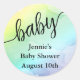 Este sencillo y moderno pegatina de etiquetas con el favor de la ducha para bebés presenta la palabra bebé con escritura a mano y un fondo de arcoiris acuarela. Agregue su información en el formulario de plantilla. Cambie el tipo de letra y el diseño mediante la función Personalizar adicional.