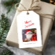 Etiqueta Feliz Navidad del gato en un sombrero de Santa