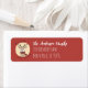 Un lindo pegatina de domicilio para todos tus saludos y regalos de vacaciones que se envían este año. El diseño presenta a un lindo Navidad reno vestido con una bufanda roja y verde con el texto "Feliz Navidad".