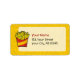 ilustracion personalizado de un pequeño paquete de patatas fritas. Iconos de contorno de comida basura fondo de patrón amarillo. Texto personalizado.