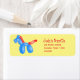 ¡Prepárate para el fiesta especial de tu hijo! Sello especial lindo fiesta de globo animal personalizado de caballo de animal dirección personalizada con un diseño artístico de un lindo animal de globo azul contra un fondo de color amarillo personalizable. El texto es totalmente personalizable para incluir sus propios datos personales.