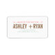 Estos personalizados Guardar las etiquetas de la dirección de devolución Fecha incluyen los detalles de su boda en un tipo moderno. La mayoría de los elementos de diseño se pueden redimensionar, mover o eliminar según su elección/preferencia.