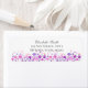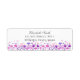 Flores acuáticas en tonos violeta, azul y rosa con acentos de melocotón. Se establece sobre un fondo blanco. Flores en tonos violeta, azul y rosa con acentos de melocotón. Se establece sobre un fondo blanco. Personalice su nombre y dirección con una fuente mixta de color gris oscuro.