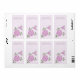 Adorable ilustracion de dos flores moradas sobre un fondo de polka morado claro y blanco.