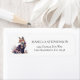 Un ilustracion magnífico de un zorro rojo de bosque rodeado de flores en rosados y púrpura se sienta a la izquierda de esta etiqueta de dirección de retorno y usted puede fácilmente personalizar la tipografía negra moderna con su propio nombre e información de contacto.
