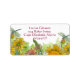 Un pegatina de dirección de primavera bonito decorado con girasoles amarillos brillantes, pargos blancos y una libélula dibujada en pluma y tinta con acuarela.