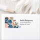 Etiquetas de direcciones con un borde de rosas pintados de rosa y azul y hojas verdes.