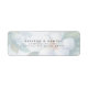 Una hermosa plantilla floral para la novia DIY. Diseño floral minimalista con flores de madera de dogwood en el fondo. El fondo de la etiqueta de la dirección de retorno muestra la imagen completa de hermosas flores blancas y su follaje. El texto simple y minimalista comienza con sus nombres en todas las mayúsculas. Su dirección está en cursiva y combina mayúsculas y no mayúsculas.Puede reemplazar fácilmente el texto de la plantilla con sus propios detalles de boda. También es fácil cambiar el tipo de letra, el tamaño y el color del texto.