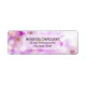 Etiquetas de direcciones con una hermosa fotografía con flores de cerezo rosa. Imagen soñadora con luces de bokeh y destellos.
