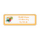 Esta etiqueta de dirección de retorno incluye hibiscos acuarelas, pájaro del paraíso y otras flores tropicales en un centro blanco, con un fondo de color naranja pálido. El texto de esta etiqueta se puede personalizar y utilizar como etiqueta de dirección de retorno o como etiqueta de regalo.